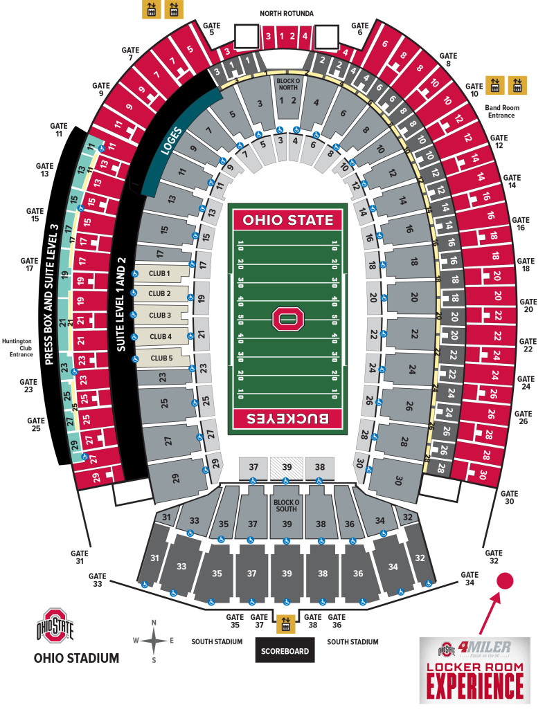 Where to go: The Experience will take place in the Ohio State Football Home Locker Room at the southeast corner of the Ohio State Football Stadium. You will enter the Stadium via Gate 30. CLICK HERE for a map of the Stadium.